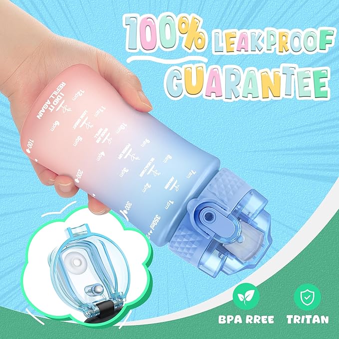 - 【DURABLE & BPA FREE】: Constructed from highly durable, BPA-free, and non-toxic plastic, this water bottle is resistant to drops and avoids easy damage.