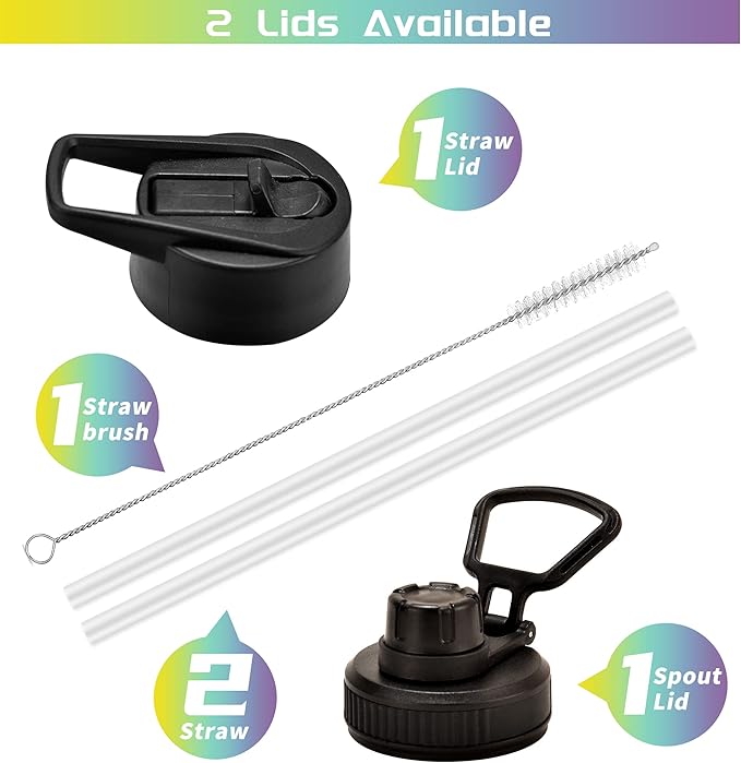 - 【2 Lid Availabl】It comes with 2 compatible and leakproof lids to fit your every need. One spout lid with screw cap allows for fast water flow when you're feeling the burn. Another straw lid allows you to enjoy spill-proof sipping without efforts. They allow easy one-handed or hands-free drinking even when you're busy. Perfect for any indoor and outdoor activities.