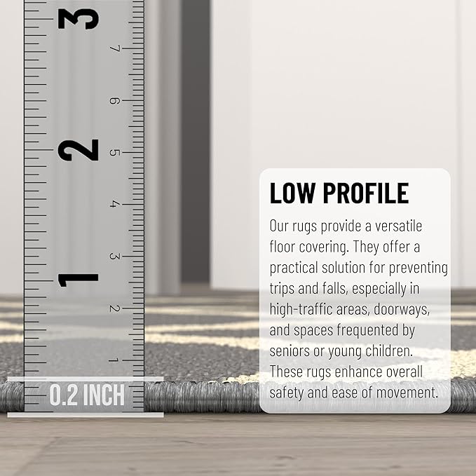 - [LOW PILE]: A low pile thickness of 0.2 inches offers ideal functionality that is perfect for busy areas, underneath furniture, and in entryways as it will not obstruct doorways.
