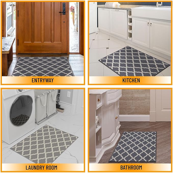 - [TRENDY STYLE]: This Colorful Moroccan Trellis Design Area Rug/Entryway Mat features a tasteful moroccan trellis design with white motifs on a beautiful gray background while also adding color and enhancing the look of your home. Its timeless design can be integrated into a variety of home décor styles.