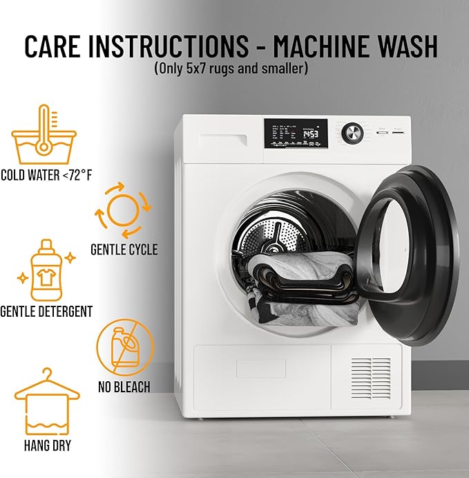 - [EASY CARE]: Stress free cleaning includes regular vacuuming (no brushes/rollers) and gently spot cleaning out minor stains with mild detergent or carpet cleaner. Creases and curling should flatten with 5-7 days of regular use. To expedite this process, reverse roll the corner with the crease and gently apply pressure.
