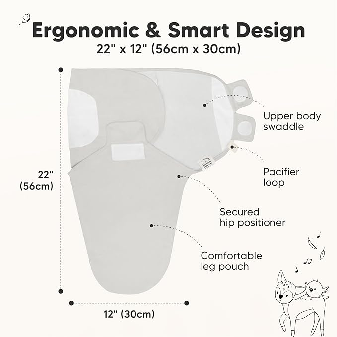- Ergonomic for Newborn Growth - Certified as a hip-healthy product by the International Hip Dysplasia Institute (IHDI), the KeaBabies Soothe Baby Swaddle Sack provides ergonomic hip support for an infant's first 6 months of growth.