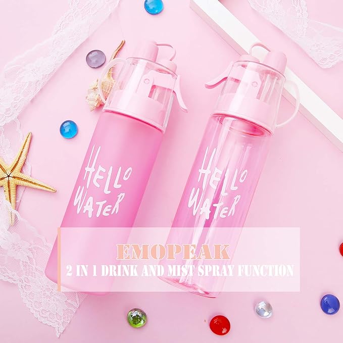 Emopeak 580ML Misting Water Bottle, 20OZ Sports Water Bottle with Spray Mist for Outdoor Hydration, BPA-Free Mist Water Bottle (Pink Transparent, 580ml/20oz)