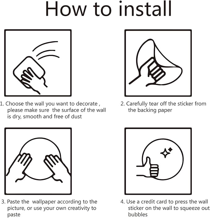 - EASY TO INSTALL: 1. Clean the surface where the sticker will be placed; 2. Remove the backing of the sticker; 3. Stick the sticker on the wall. This sticker will be more firm when used on a flat surface.