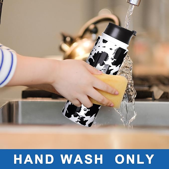 1pc Cow Print Sport Water Bottle with Straw 4 Lids,Birthday Gifts for Women Insulated Cups Funny Gifts for Girlfriend Cow Print Stuff Gifts for Daughter Cow Lovers Black