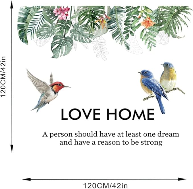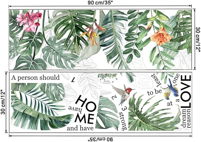 - Stylish Pattern Design: Giant tropical leaves, flowers and birds printed design is cute and fresh. Green plants leaf wall stickers use bright tones and bright colors to create a natural and healthy atmosphere in your room, make your room special.