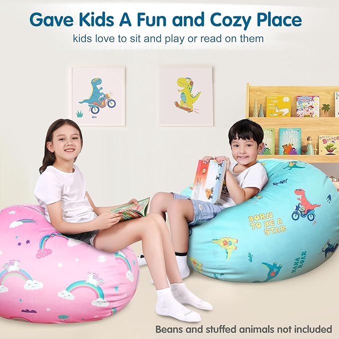 - Great Stuffed Animal Storage: Large size dinosaur bean bag chair cover at 27" and could hold up to 60 small stuffed animals toys (Not Included). The cute design adds a charming touch to the room. And cool patterns to choose from