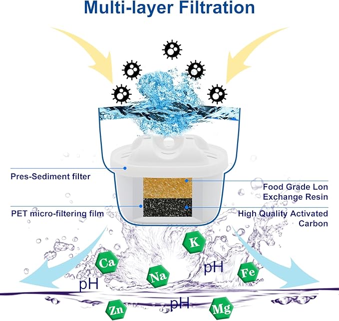 - 【Multistage Filtration】: Utilizes coconut shell activated carbon and ion-exchange resin for maximum filtration, with an easy pull-top cap for convenience.