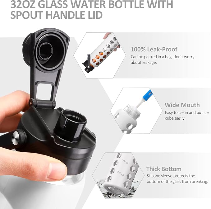 - COLD DRINK:Waterbottle made of premuim borosilicate glass which is sturdy and thermal resistance and wrapped in a silicone sleeve for a good grip.It can withstand high and low temperatures without shattering or cracking, which makes the glass waterbottle suitable for both hot and cold drinks.Especially like that the bamboo lid has a silicone bottom that doesn't contact the liquid inside.