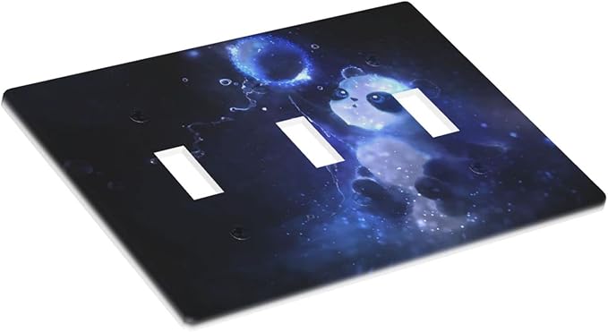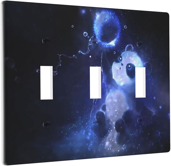 Cute Baby Panda Light Switch Cover Wall Plate Decorative 3 Gang Triple Toggle Covers Blue for Playrooms Bathrooms Farmhouses Living Room 4.5 x 6.38 in