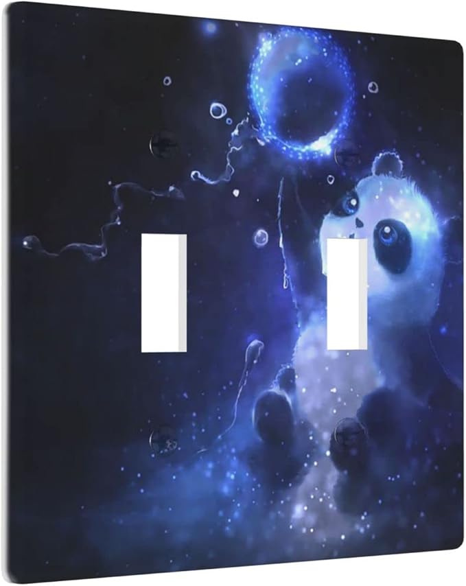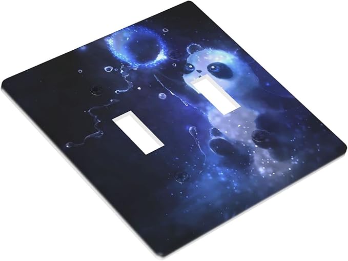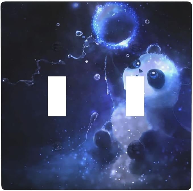 Cute Baby Panda Light Switch Cover Wall Plate Decorative 2 Gang Double Toggle Covers Blue for Kitchens Playrooms Bathrooms Farmhouses 4.5 x 4.5 in