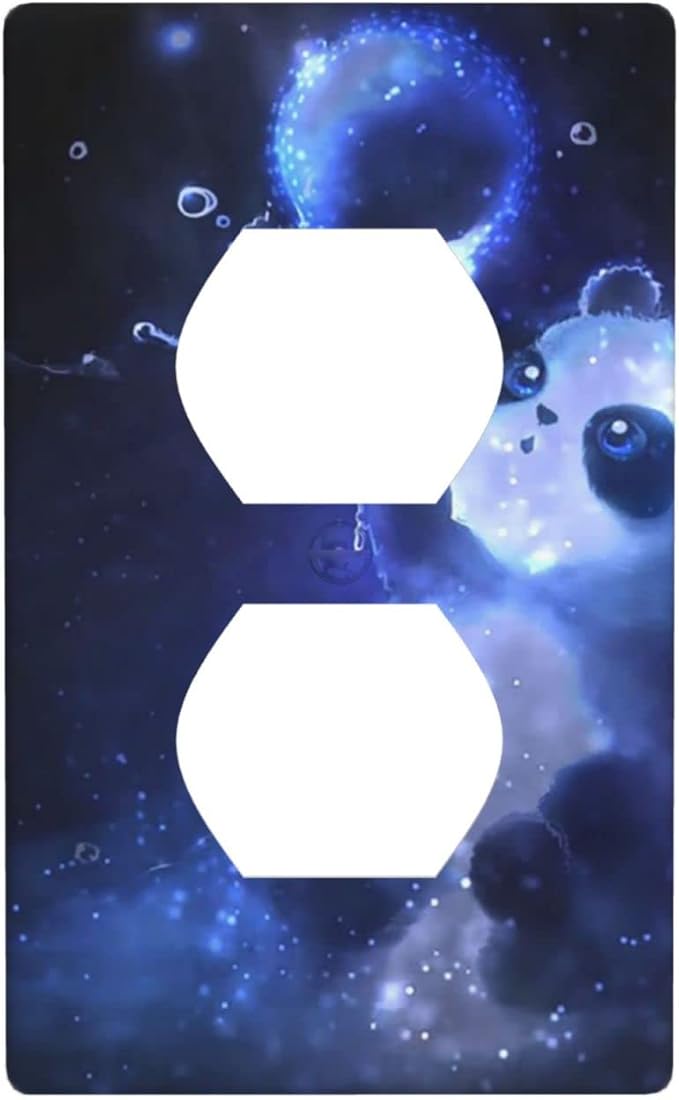 Cute Baby Panda Light Switch Cover Wall Plate Decorative 1 Gang Single Duplex Outlet Covers Blue for Farmhouses Bathrooms Duplex Electrical Receptacle Covers 2.76 x 4.5 in