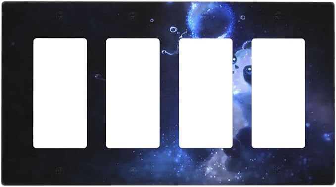 Cute Baby Panda Light Switch Cover Wall Plate Decorative 4 Gang Quad Rocker Covers Blue for Kitchens Farmhouses Playrooms Bathrooms Bedrooms 4.5 x 8 in