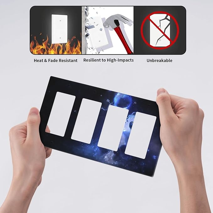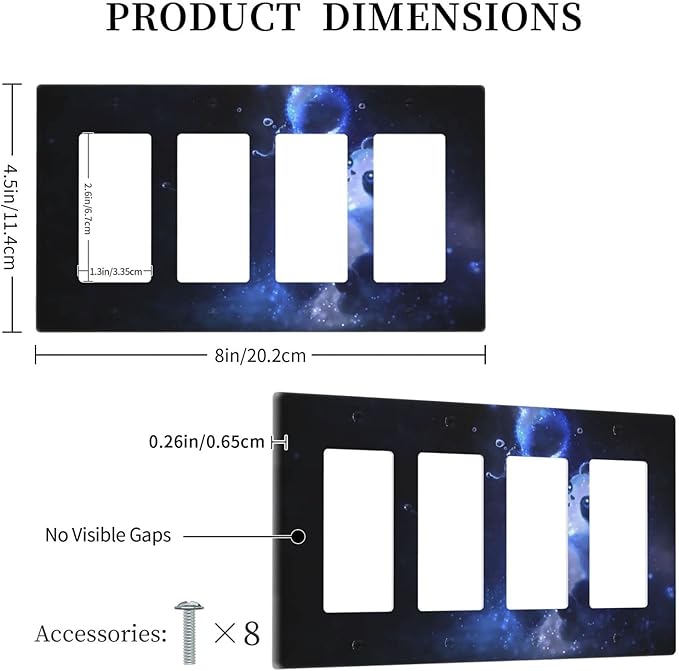 - Size:quad rocker wall plate : 4.5" x 8".the standard Size is easy to install on the wall grid, covering more wall defects, which makes it easy to decorate any standard switch cover and electrical socket.