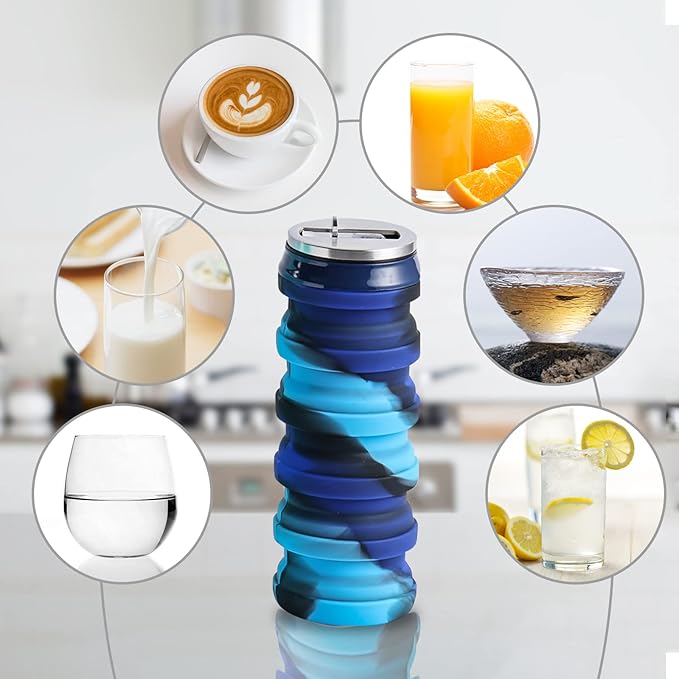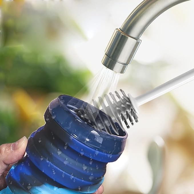 - 👉🏼【SET INCLUDES】: Set includes 1-pack of collapsible water bottles and a silicone brush, made of food-grade silicone BPA Free, 500ml/17oz.Only 3.5 inches when folded, 200ml/7oz. Portable and easier to store.