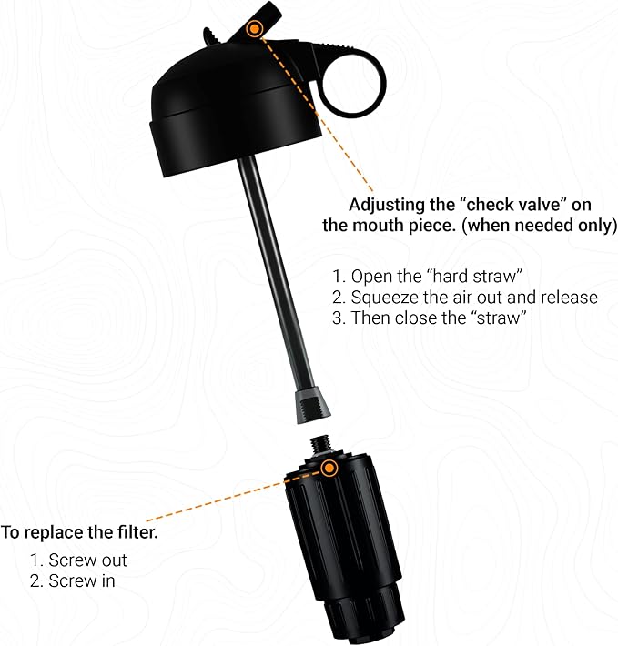 - ✔️ BREAKTHROUGH IAMF TECHNOLOGY - The proprietary "IAMF" technology has a revolutionary porous micro-filter system that removes, absorbs, bonds, and chelates contaminants, while the “SIP & SQUEEZE" Pressure (PSI) mechanism makes ETA a Trustable Water Filter for Travel, an Ideal Water Filter for Camping, Water Filter for Backpacking & an Exceptionally Tested Water Filter for Emergency, Water Filter for Survival. ETA is BPA-FREE & Proudly Made in The USA.