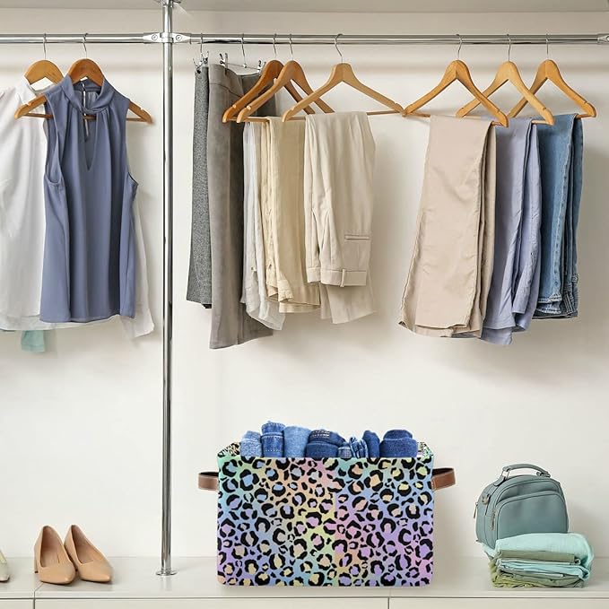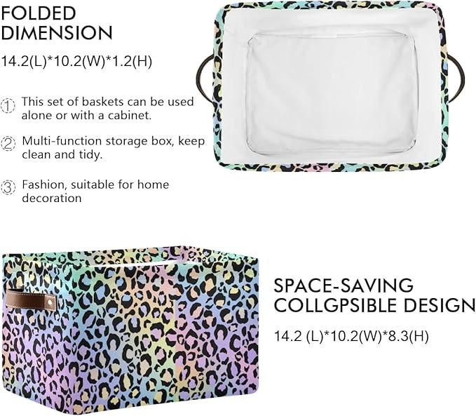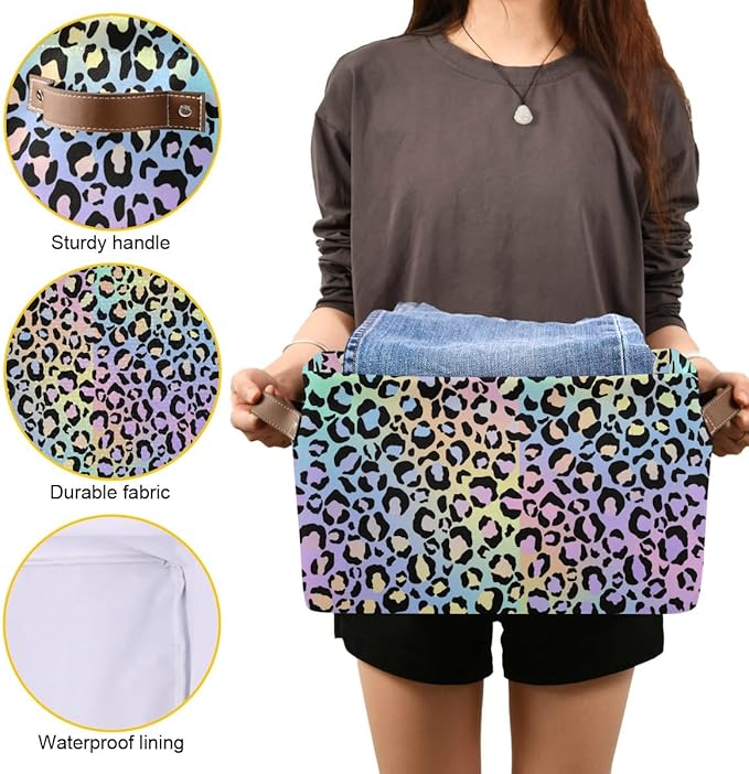 Leopard Storage Basket Fabric Storage Bin Decorative Baskets, Yellow Purple Green Foldable Storage Boxes Organizer Bag for Baby Cloth Dog Toy Book Storage Cubes Shelf Closet Basket 16×12×8 Inches