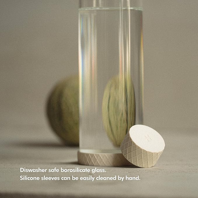KIVY 32 oz Glass Water Bottle with Silicone Sleeve - Neutral glass waterbottle 32oz - Aesthetic water bottles glass bottle - Borosilicate glass water bottle 32 oz - White water bottle glass
