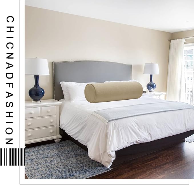 Cylinder Round Memory Foam Support Pillows 17.8X6 Cervical Neck Roll Pillow with Pillowcase Soft, Comfortable and Breathable for Sleeping, Chair, Car, Sofa,Travel Light Coffee