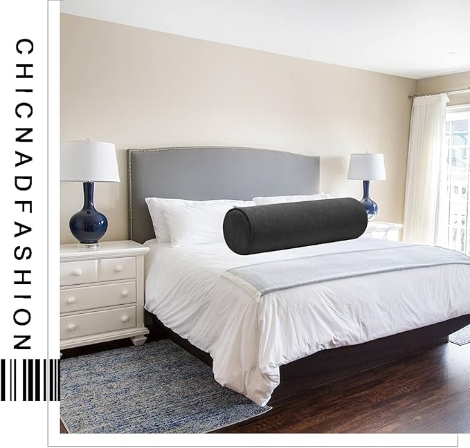 Cylinder Round Memory Foam Support Pillows 24X6 Cervical Neck Roll Pillow with Pillowcase Soft, Comfortable and Breathable for Sleeping, Chair, Car, Sofa,Travel Black