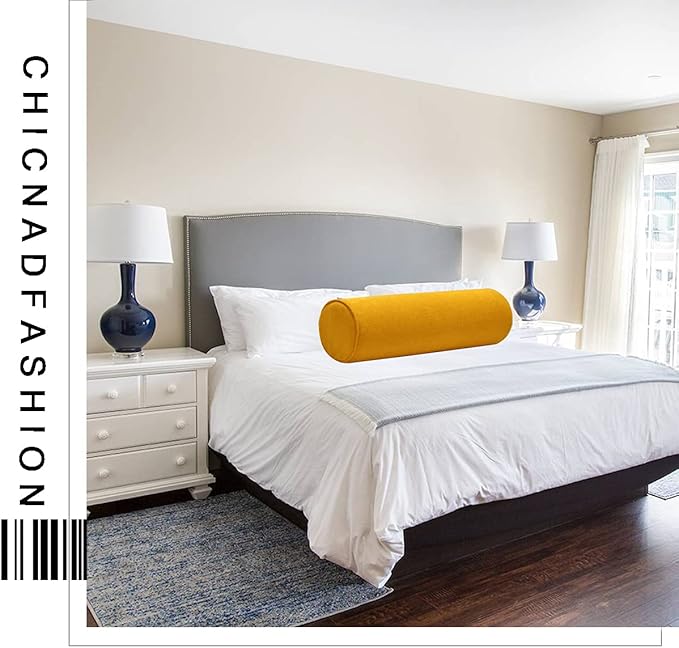 Cylinder Round Memory Foam Support Pillows 24X6 Cervical Neck Roll Pillow with Pillowcase Soft, Comfortable and Breathable for Sleeping, Chair, Car, Sofa,Travel Yellow