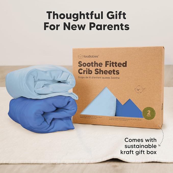 - 2-Pack Fitted Crib Sheets - Each KeaBabies Soothe Baby Crib Sheets set comes with two organic crib sheets for boys and girls that can perfectly fit the standard nursery crib mattresses sized at 52” x 28” and height of 3” to 8”.