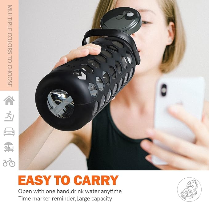 - MULTI FUNCTION:Portable large water bottle perfect for traveling, camping, running, biking and outdoor activities. Big water bottle with Silicone Sleeve comes with multiple vibrant colors,making it an ideal Mother's Day gift or any holiday.