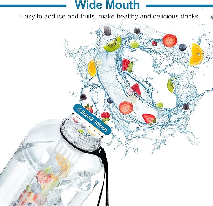 - 【Large Capacity and Scale Marks】74 oz/Half gallon large capacity allows you to fill enough water when the fruit container is full, maintaining the daily water intake required for human health; the transparent design and scale marks on the bottle remind you of daily drinking water progress.