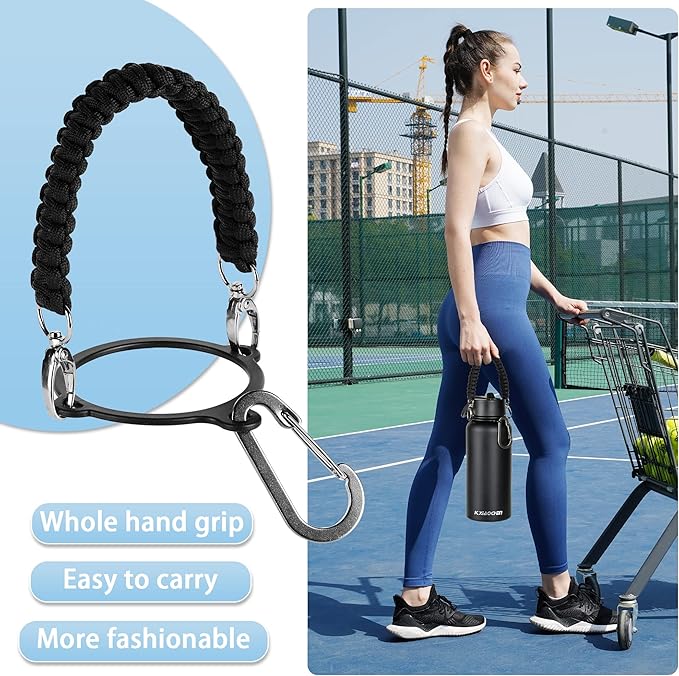 - Paracord Handles & Strap:32 oz water bottles Equipped with high quality colorful nylon braided Paracord Handles, bid farewell to the uncomfortable grip feeling, make the lifting more relaxed! Insulated 32 oz water bottle also comes with a 70.86 inches retractable strap, which can be worn directly on the body to free your hands and allow you to ride, climb, hike, rock climb and surf freely.