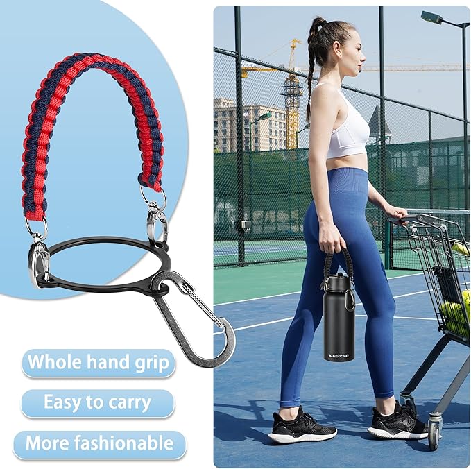 - Paracord Handles & Strap:32 oz water bottles Equipped with high quality colorful nylon braided Paracord Handles, bid farewell to the uncomfortable grip feeling, make the lifting more relaxed! Insulated 32 oz water bottle also comes with a 70.86 inches retractable strap, which can be worn directly on the body to free your hands and allow you to ride, climb, hike, rock climb and surf freely.