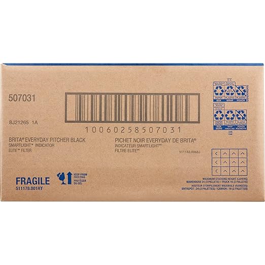 Brita Large Water Filter Pitcher for Tap and Drinking Water with SmartLight Filter Change Indicator + 1 Elite Filter, Reduces 99% Of Lead, Lasts 6 Months, 1-Cup Capacity, Black