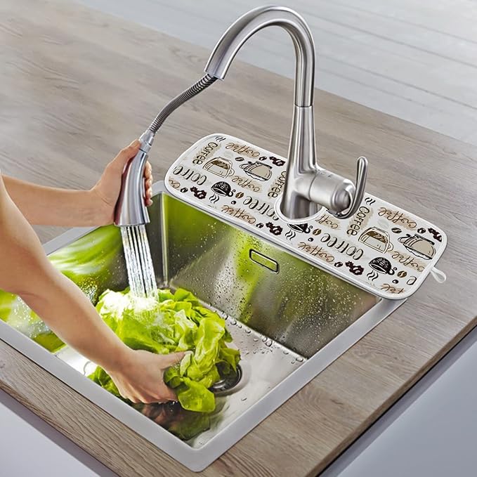 - DECORATION FOR KITCHEN BATHROOM: Using these Faucet Splash Catchers with our unique design, timeless color and seamlessly blends into your home to create perfect Sink Accessories, add a touch of luxury in your kitchen&bathroom will give your house an amazing makeover and elevate your home decor.