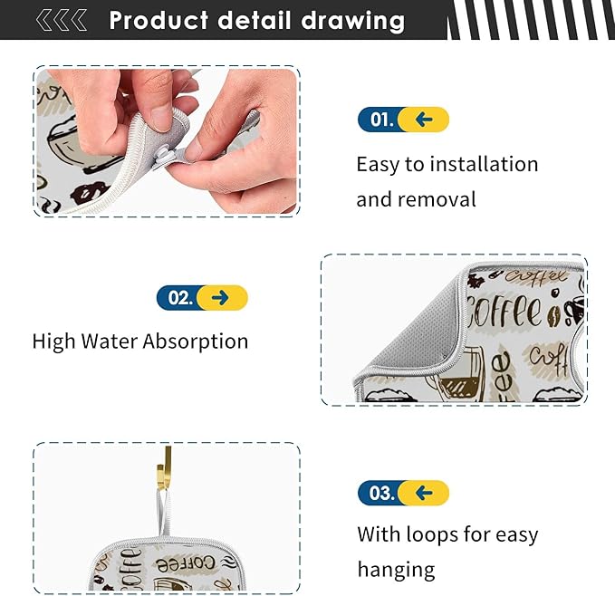 Coffee Theme Faucet Water Catcher Mat 2 Pack Coffee Cup Beans Drying Mat Absorbent Bathroom Faucet Handle Drip Catcher Tray Bar RV Kitchen Sink Splash Guard 30x5 Inches