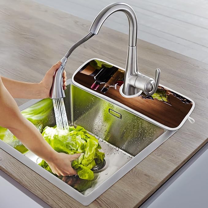- DECORATION FOR KITCHEN BATHROOM: Using these Faucet Splash Catchers with our unique design, timeless color and seamlessly blends into your home to create perfect Sink Accessories, add a touch of luxury in your kitchen&bathroom will give your house an amazing makeover and elevate your home decor.