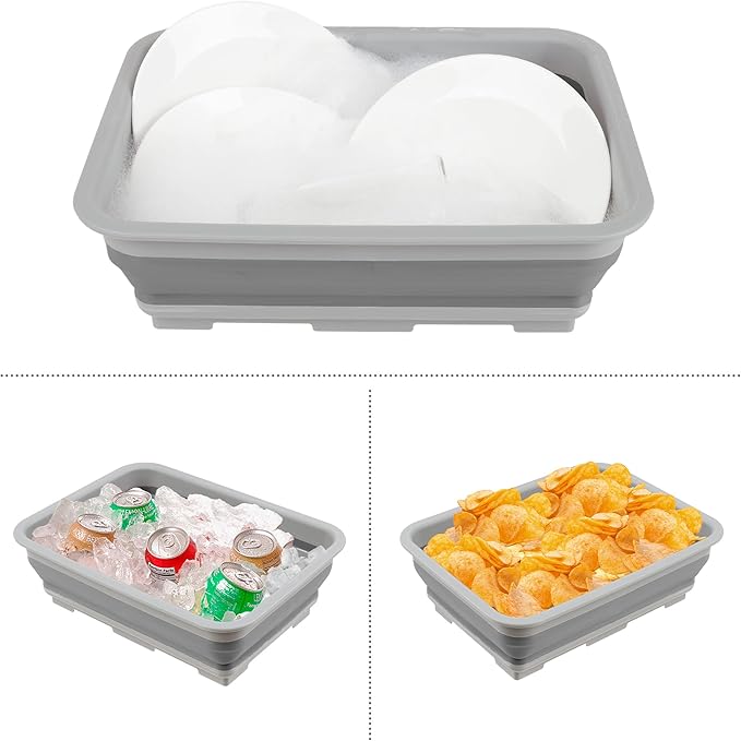 • WASH BASIN SET OF TWO – These versatile bins can be used for a variety of tasks at home and on the go. Each collapsible dish tub can be used as an ice bucket, camping sink, for gathering and rinsing fresh produce, as a cleaning caddy, car wash bucket and more.