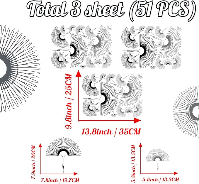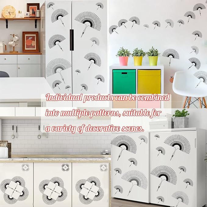 - ★Modern Fans Wall Art Decoration: This Art wall sticker is consists of different sizes of fans,Which is great for decorating living room and bedrooms.The unique fans design can create a art environment to enjoy fun and freedom in your rooms.