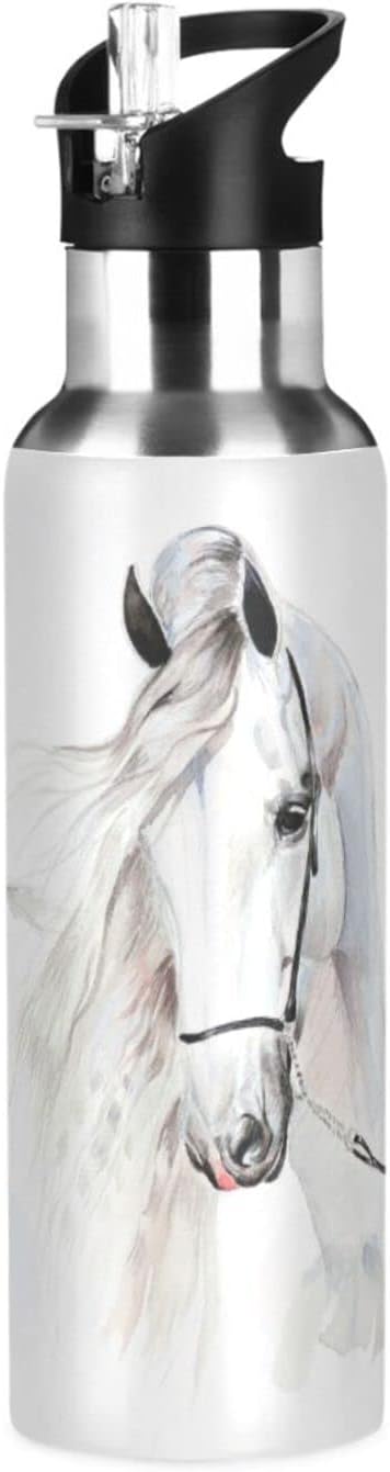senya 20 Oz Water Bottle with Straw White Horse Stainless Steel Water Bottle for Traveling Sports Leakproof Insulated Water Bottle