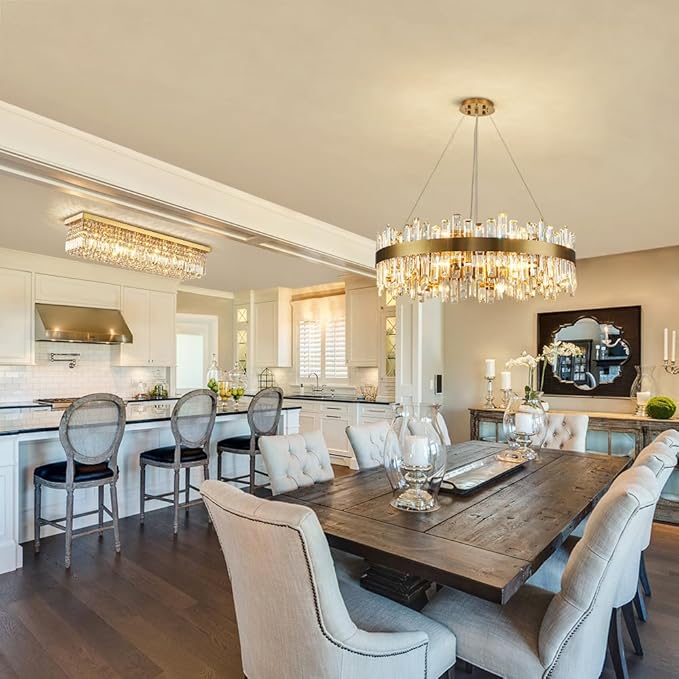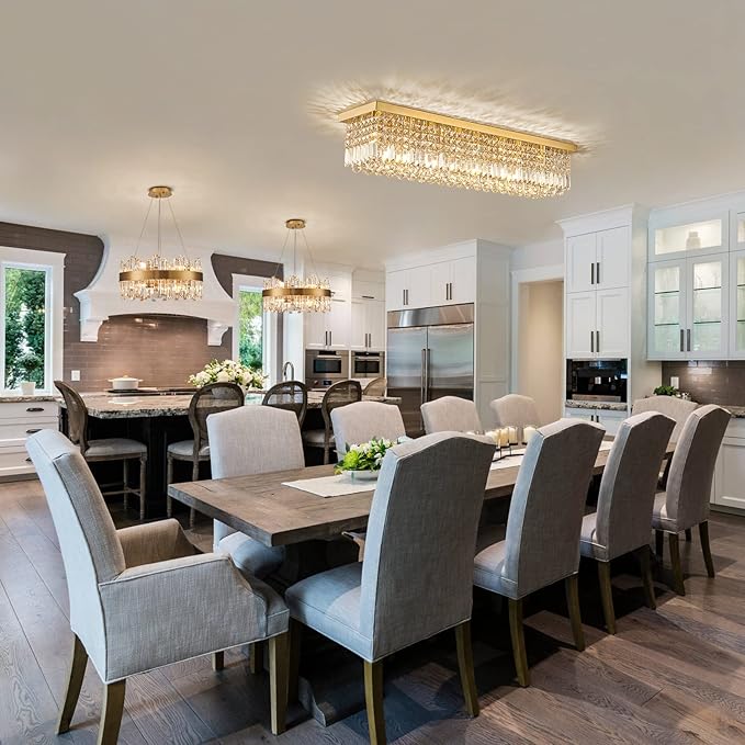 - â¨ăUnique Gold Flush Mount Chandelieră: Modern gold flush mount ceiling light with luxury raindrop design. It adds a touch of luxury and elegance to any dining rooms and elevates the overall aesthetic of any spaces. Suitable for dining room, living room, kitchen island, bedroom, bathroom, bar, hallway, entryway, office, etc.