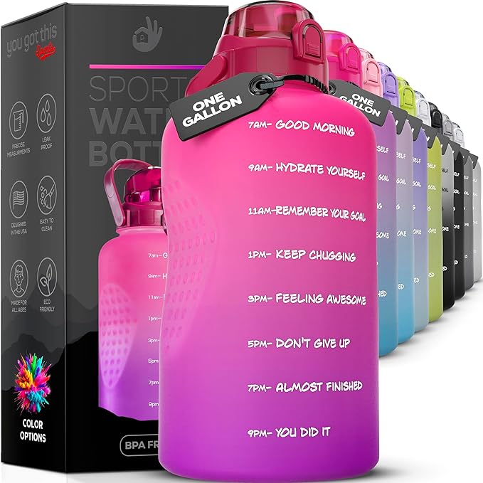 - ALL-DAY HYDRATION The One-gallon water bottle with motivational quotes by the hour keeps you hydrated throughout the day and your daily water intake on track at home, gym, or while you travel
