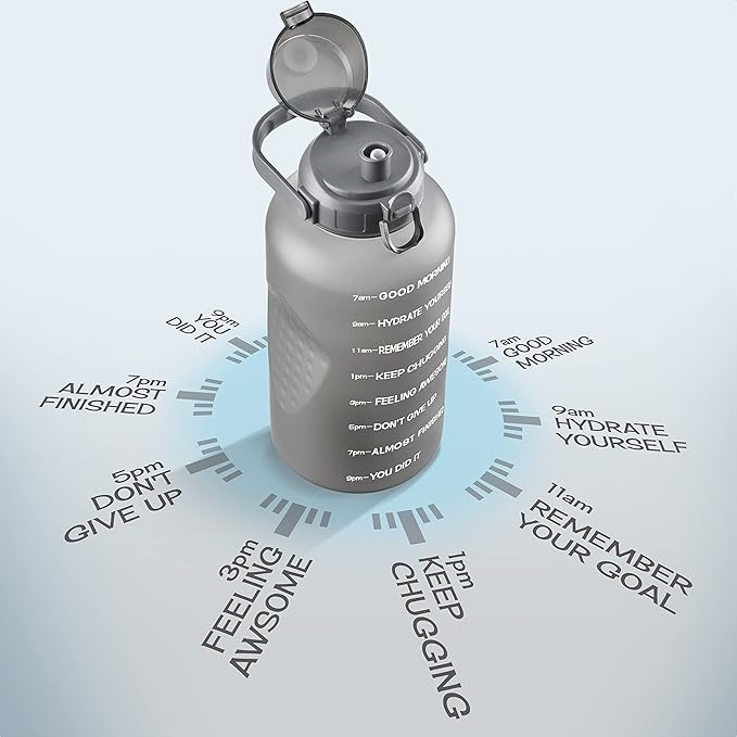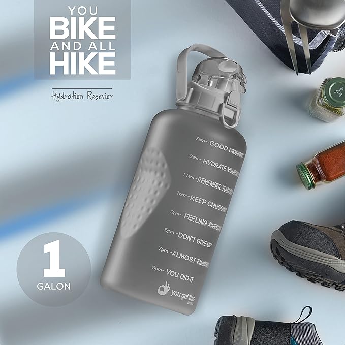 - ALL-DAY HYDRATION The One-gallon water bottle with motivational quotes by the hour keeps you hydrated throughout the day and your daily water intake on track at home, gym, or while you travel