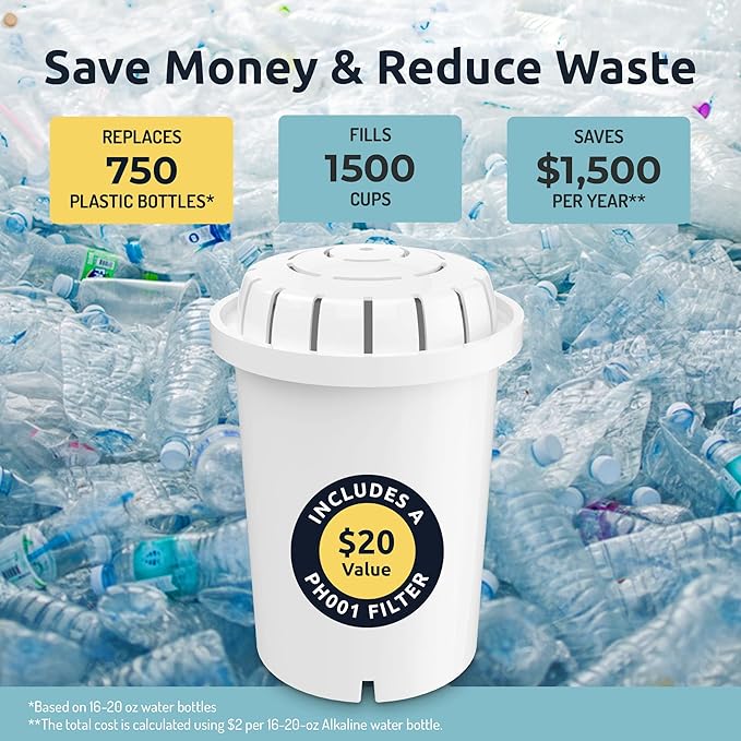- HIGH PH ALKALINE WATER DISPENSER: Our Alkaline Water Filter Dispenser is equipped with a pH001 filter. Each alkaline water filter increases pH up to pH9 and removes unwanted particles and heavy metals while keeping in minerals.