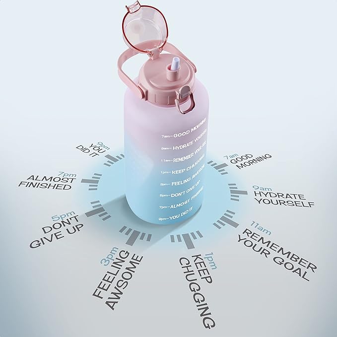 - ALL-DAY HYDRATION The One-gallon water bottle with motivational quotes by the hour keeps you hydrated throughout the day and your daily water intake on track at home, gym, or while you travel
