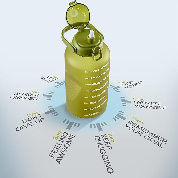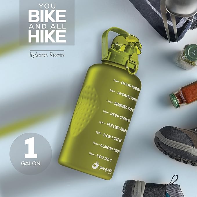 - ALL-DAY HYDRATION The One-gallon water bottle with motivational quotes by the hour keeps you hydrated throughout the day and your daily water intake on track at home, gym, or while you travel