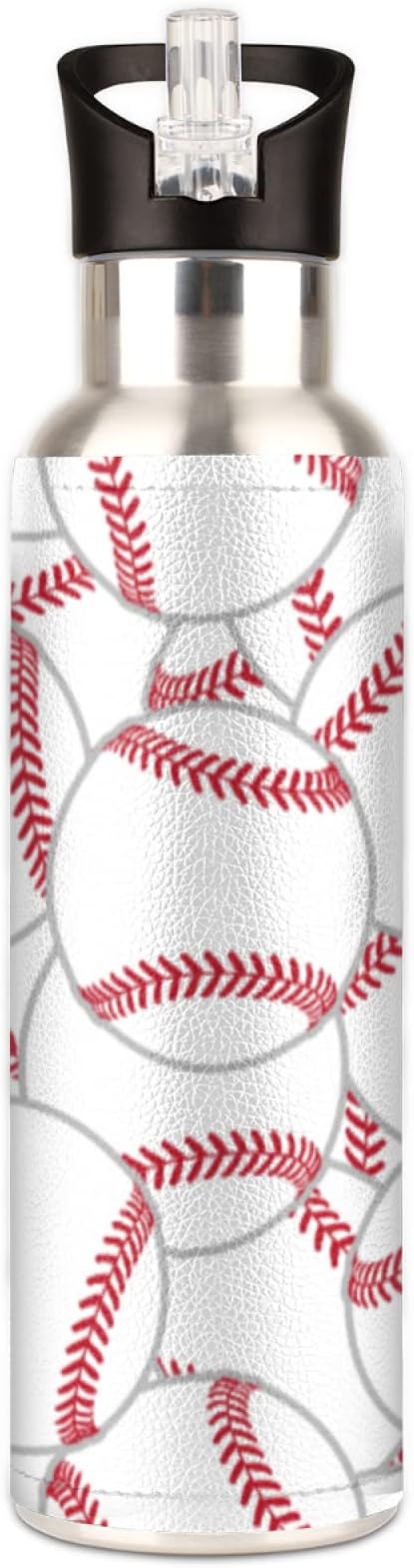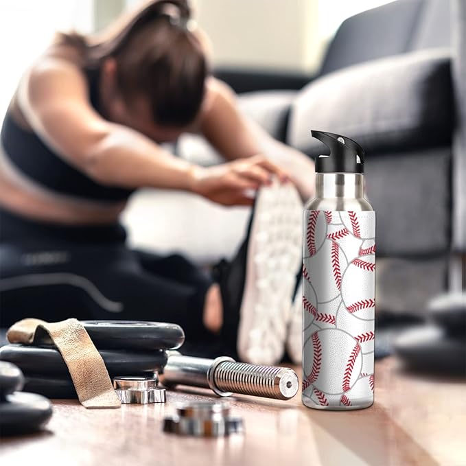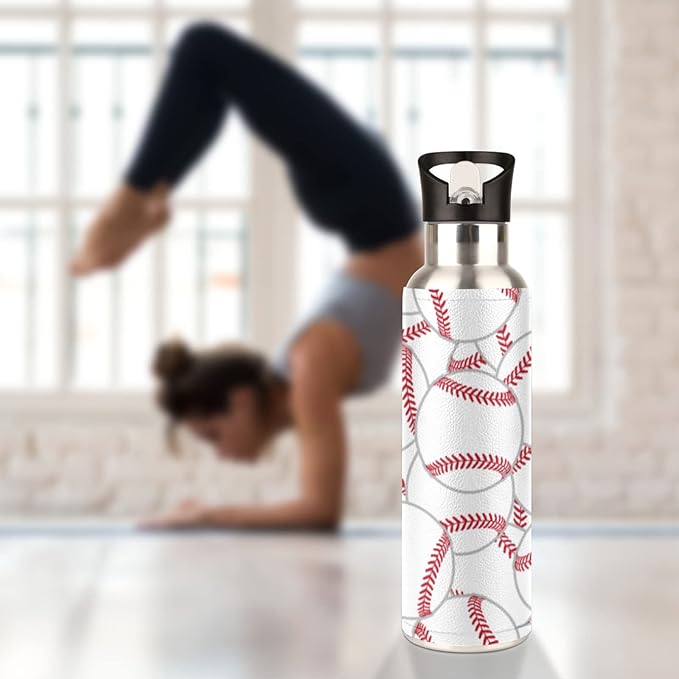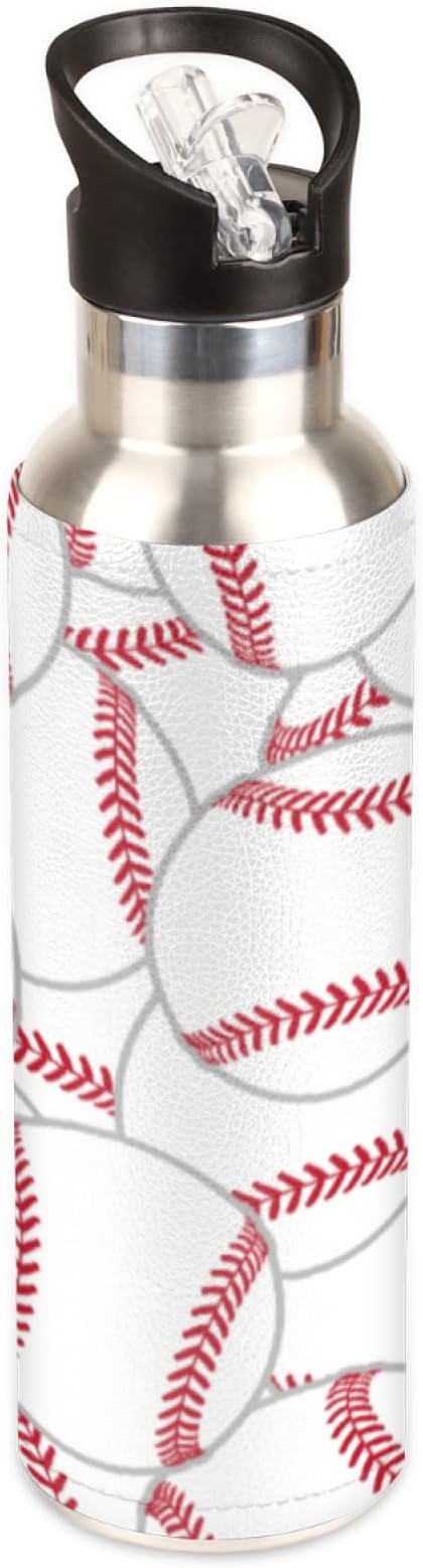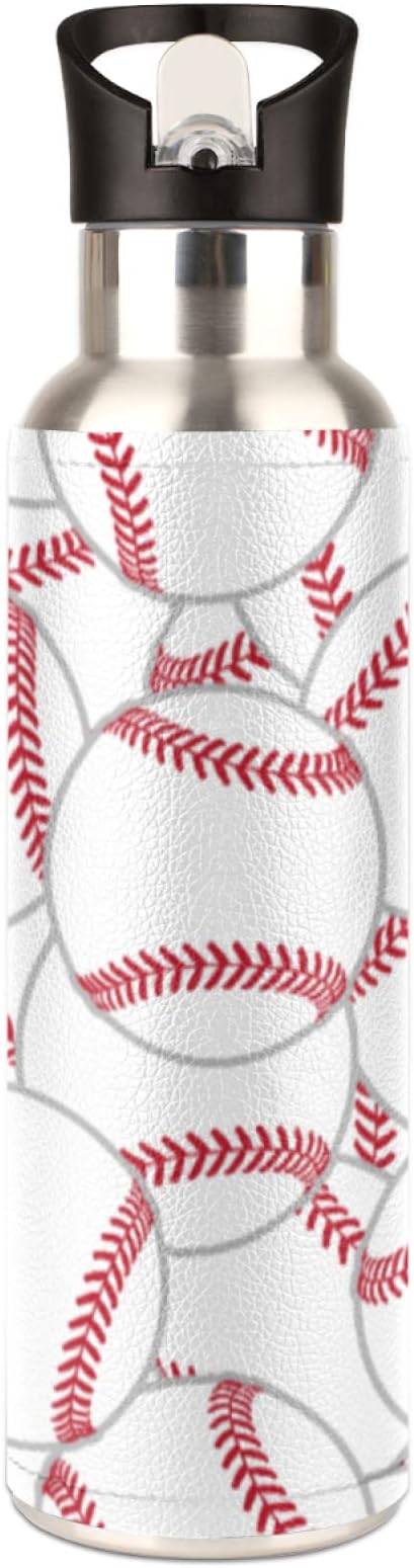 Stainless Steel Sports Water Bottle with Straw, 20 oz Vacuum Insulated Cup, Keeps Hot Cold Canteen Water Bottles For Cycling Travel Hiking (baseball)