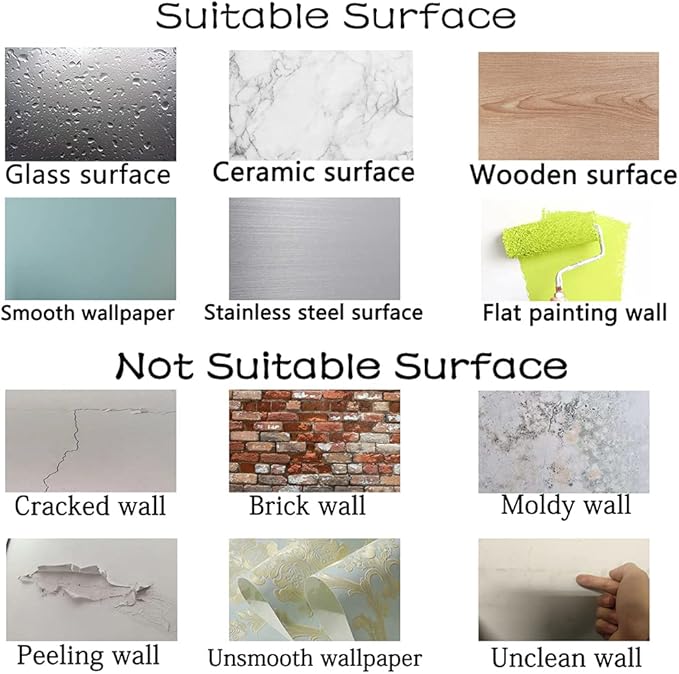 - Suitable for any flat, smooth, clean and dry hard surface, but not suitable for dirty or rough surfaces, and will not fall off for a long time. (Usually 5-8 years)