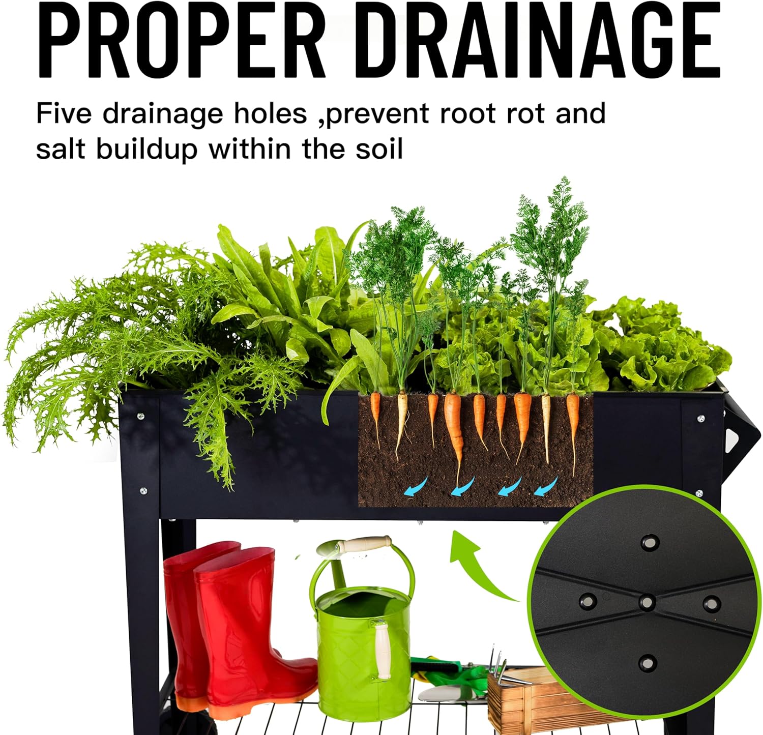 Elevate 32" Tall Raised Garden Bed Outdoor with Wheels & Shelf for Mobility, 400LBS Capacity, Anti-Rust Steel Planter Box for Vegetables/Herbs, Patio-Balcony-Backyard
