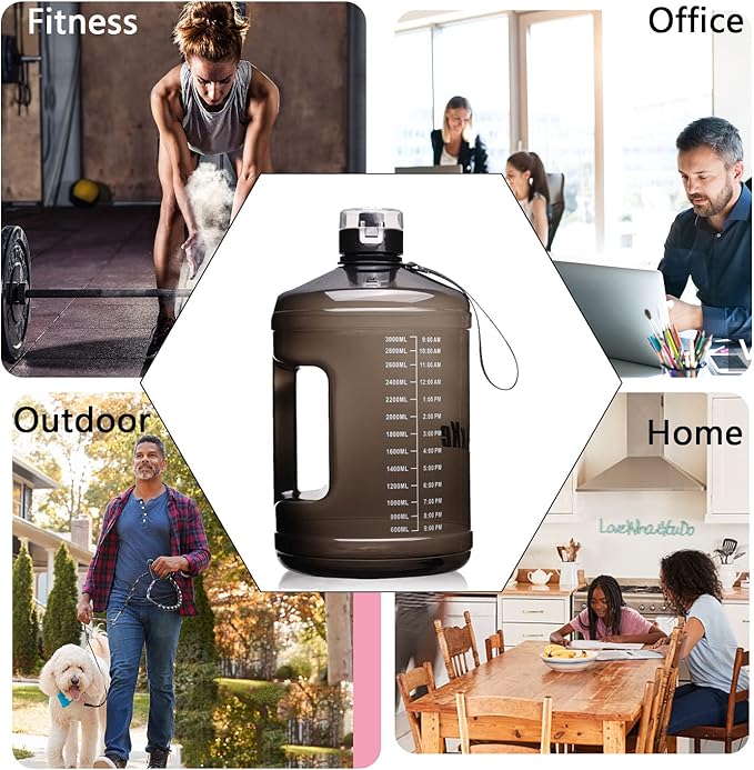 - ✅【All Day Hydration】 This sturdy large Water Bottle has two sizes to choose, 1 Gallon and half gallon, meet the daily water intake and fitness hydration needs of 2 adults when you are training hard outdoors and indoors. The convenient built-in handle allows for easy water transportation, perfect for taking to football practice, baseball games and other activities on hot summer days