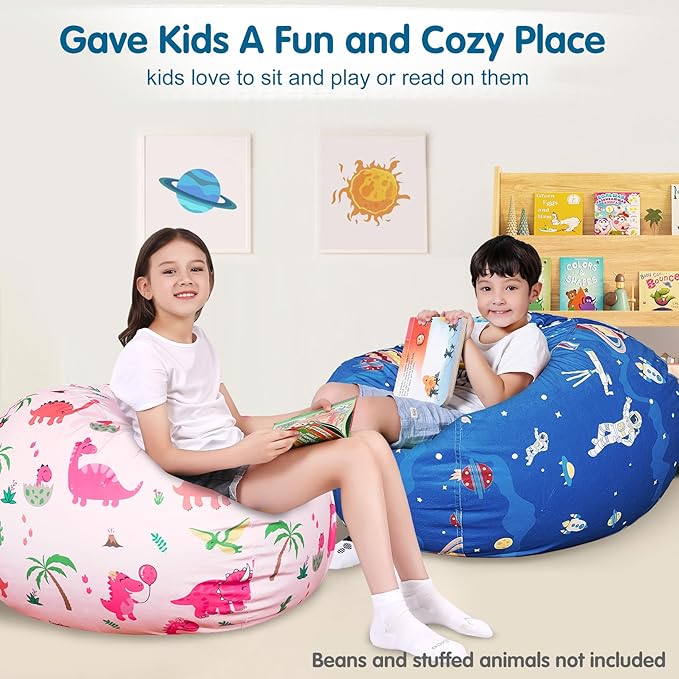 - Great Stuffed Animal Storage: X-Large size bean bag chair cover at 31" and could hold up to 90 small stuffed animals toys (Not Included). The cute design adds a charming touch to the room. And cool patterns to choose from