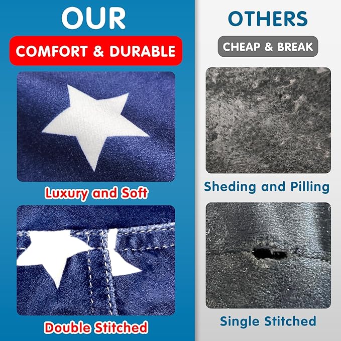 Lukeight Stuffed Animal Storage Bean Bag Chair Cover for Kids, Zipper Beanbag Chair Cover for Organizing Toddler and Kids' Rooms Plush Toys (Stars Navy Velvet, X-Large)