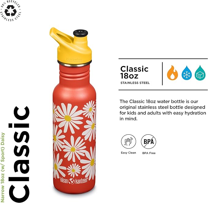 KLEAN KANTEEN Daisy Sport Cap with Classic Water Bottle 18oz, 1 EA